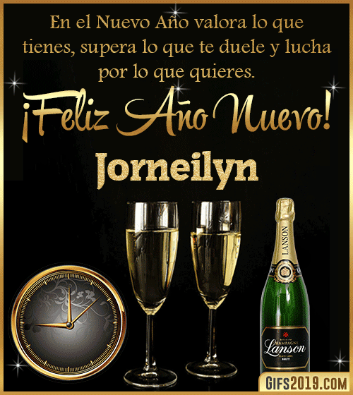 Feliz Año Nuevo Jorneilyn. Sorprende a Jorneilyn con este hermoso detalle para desearle un Feliz Año Nuevo. Tenemos imágenes personalizadas con su nombre, gifs de copas de champagne con frases de año nuevo, perfectas para compartir en redes sociales como Facebook, WhatsApp, Instagram y TikTok.